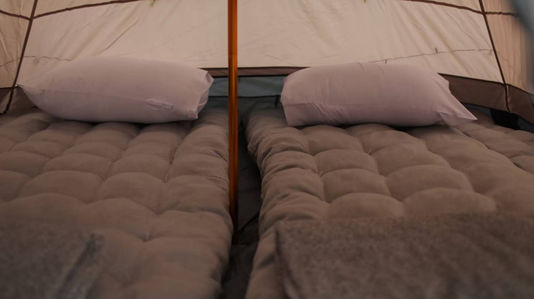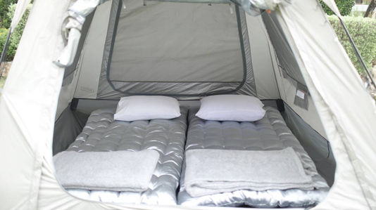 ที่พักโซนรถบ้าน แยกรถบ้าน 3 คัน พร้อมเต็นท์แอร์ 1 หลัง สำหรับพัก 8 ท่าน แต่ละหลังพักได้ 2 ท่าน ภายในมีที่นอนขนาด 5 ฟุต